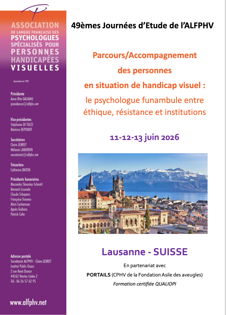 Appel à communication 49èmes journées d’étude de l’ALFPHV 2026 Parcours/Accompagnement des personnes en situation de handicap visuel : le psychologue funambule entre éthique, résistance et institutions (titre provisoire) Lausanne –[...]